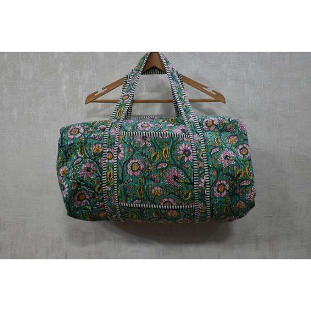 Bolsa de Viaje de Lona Acolchada con Estampado Floral Bohemio, Bolsa de Hombro Ligera de Lujo India con Estampado a Mano para Viajes Cortos