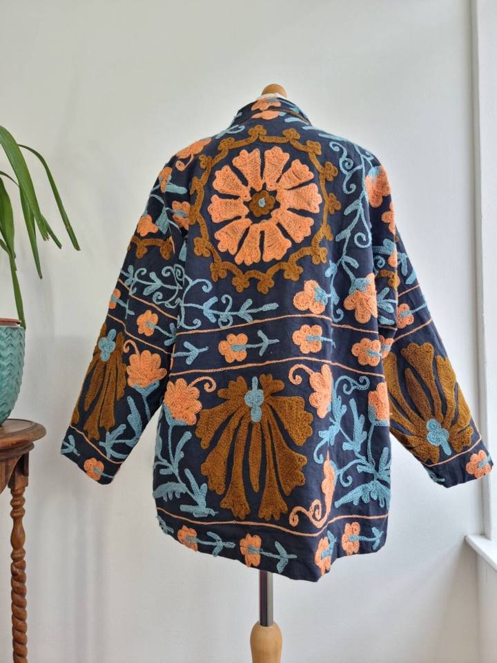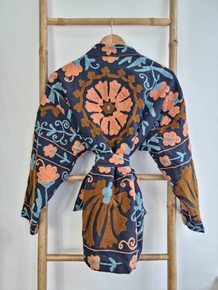 Chaqueta Larga Suzani Tejida con Estampado Bohemio Gitano para Mujer, Regalo Especial de Verano