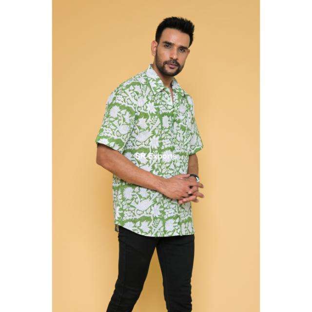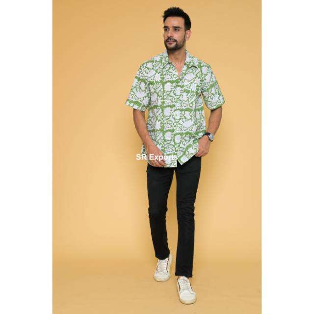 Camisa de algodón bohemio hecha a mano para hombre, ropa informal de manga corta con estampado de bloque indio, cuello con botones, ligero y elegante