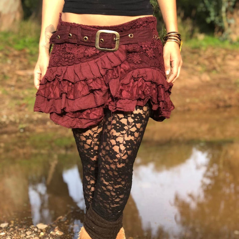 Minifalda Boho Pixie Fluida y Escalonada, Estilo Rave para Festivales, con Vibe Bohemio, Perfecta para Festivales de Baile, Estilo Vibrante