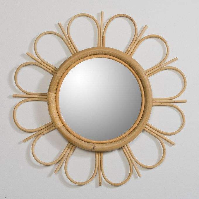 Espejo de pared redondo con flor de ratán bohemio Espejo de pared de ratán redondo de madera natural de la India POR God Grace Overseas