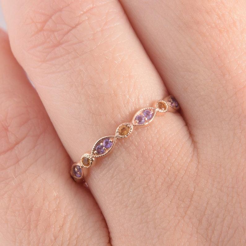 Anillo de piedras preciosas de amatista de Plata de Ley 925 de estilo bohemio, joyería hecha a mano, anillo de plata, joyería para mujer, regalo de boda para ella