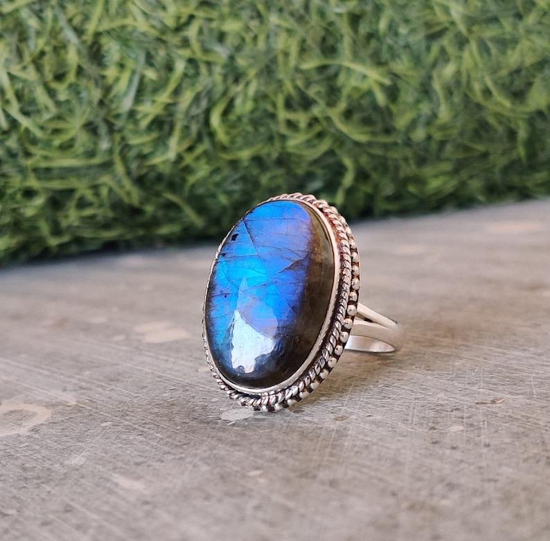 Anillo de piedras preciosas de labradorita de Plata de Ley 925 estilo bohemio, joyería hecha a mano, anillo de plata, joyería para mujer, regalo de boda para ella
