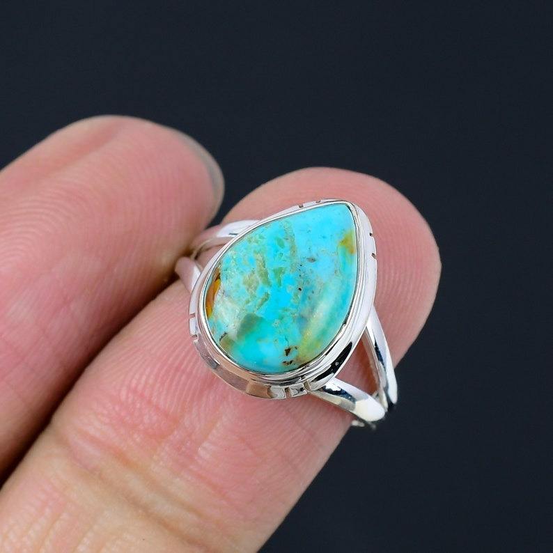 Estilo bohemio 925 plata esterlina turquesa piedra preciosa anillo joyería hecha a mano anillo de plata joyería para mujer regalo de boda para ella