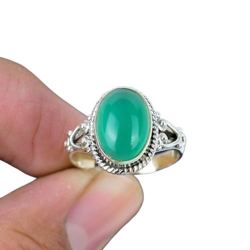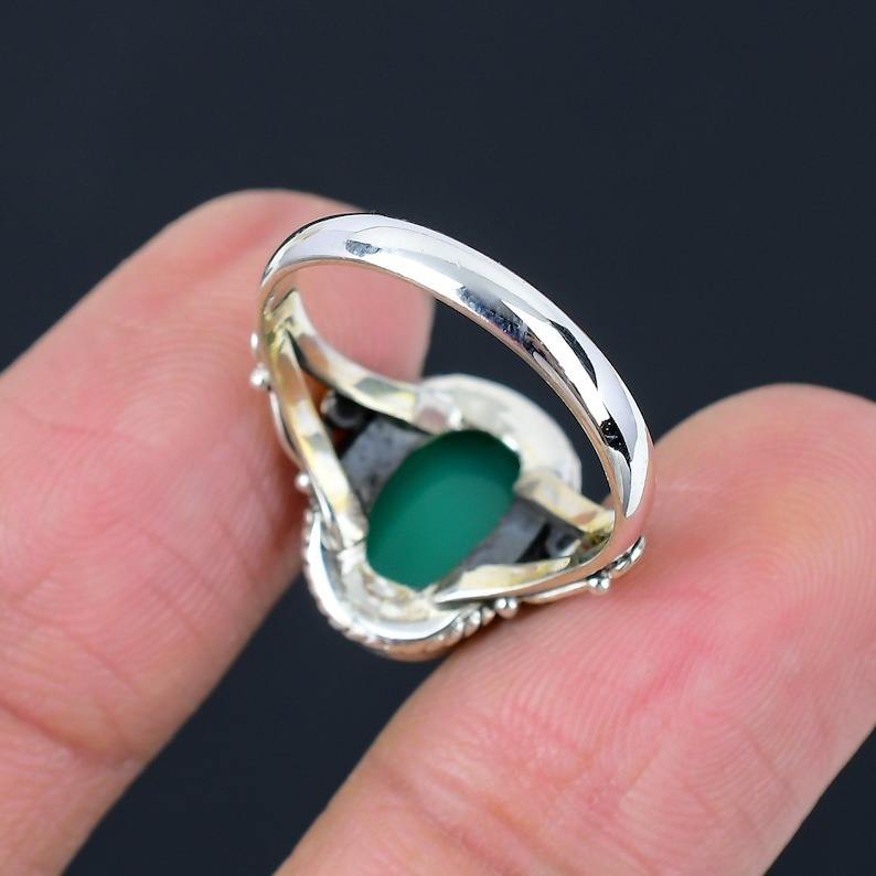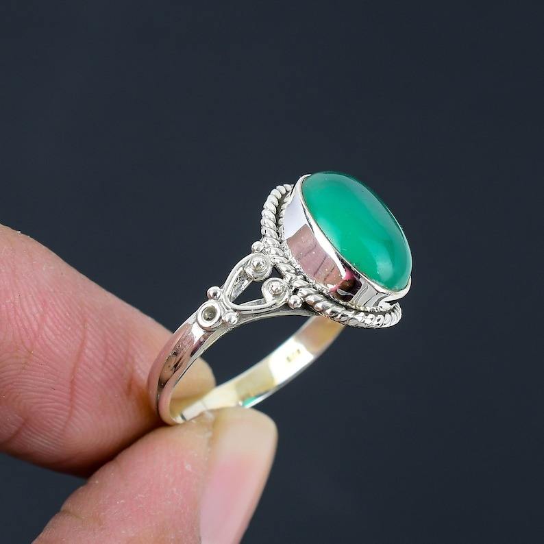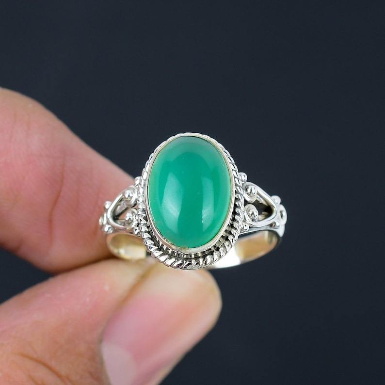 Anillo clásico de estilo bohemio para mujer, joyería de plata, Plata de Ley 925, piedras preciosas de ónix verde, anillo hecho a mano, regalo para el amor