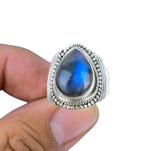 Anillo clásico de estilo bohemio, joyería para mujer, joyería de plata de ley 925, piedra preciosa labradorita, anillo hecho a mano, regalo para el amor