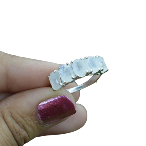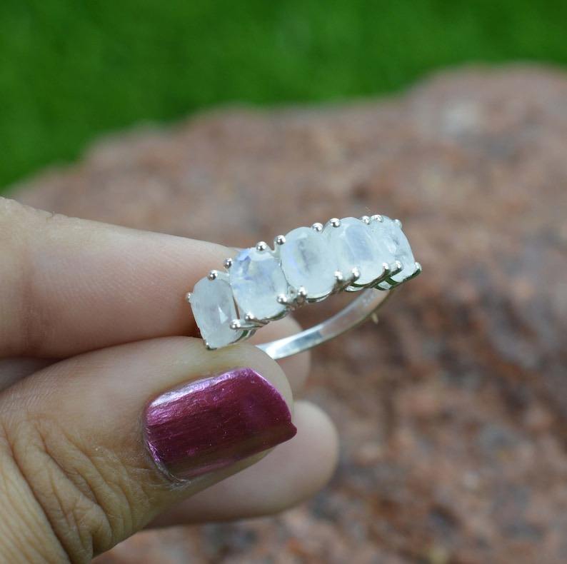 Anillo clásico de estilo bohemio, joyería para mujer, joyería de plata de ley 925, piedra lunar, piedra preciosa, anillo hecho a mano, regalo para el amor