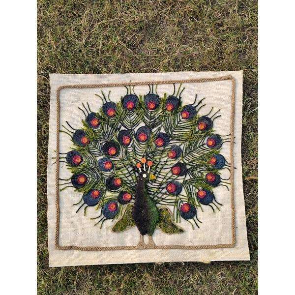 Arte de Pared Decorativo Ecológico de Estilo Boho, Hecho a Mano con Cuerda de Yute, con Diseño de Pavo Real, Ideal para Sala de Estar o Dormitorio