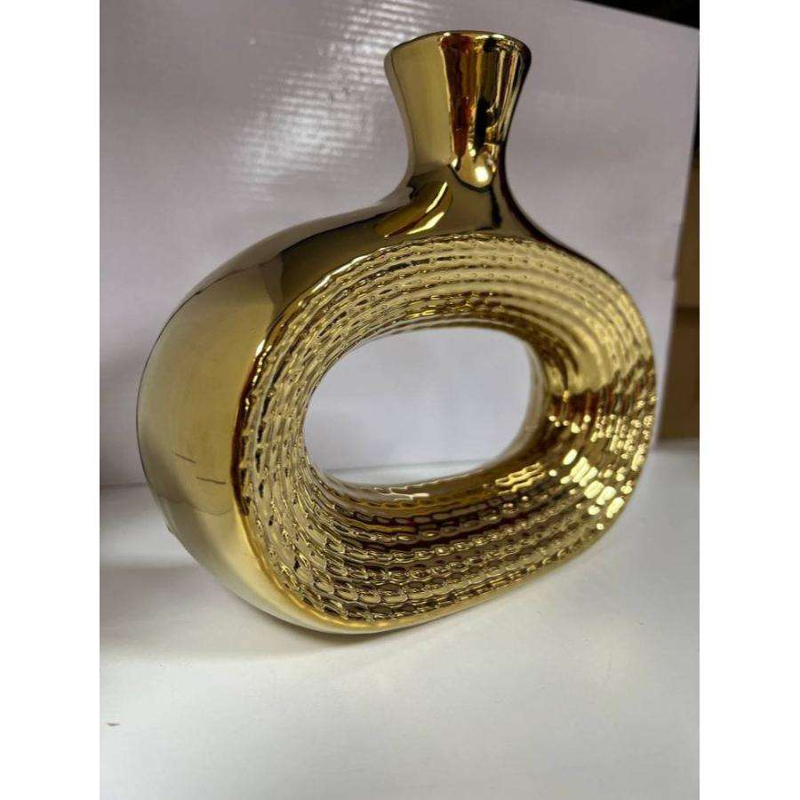 Florero de flores de metal con relieve dorado