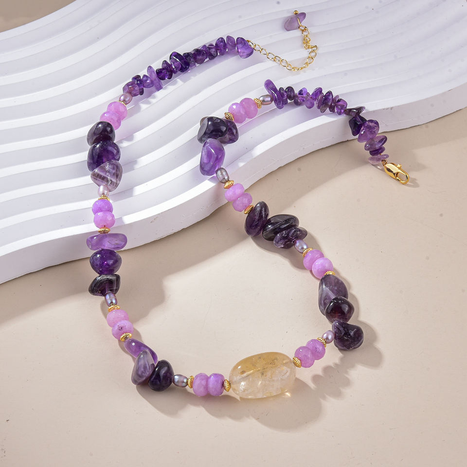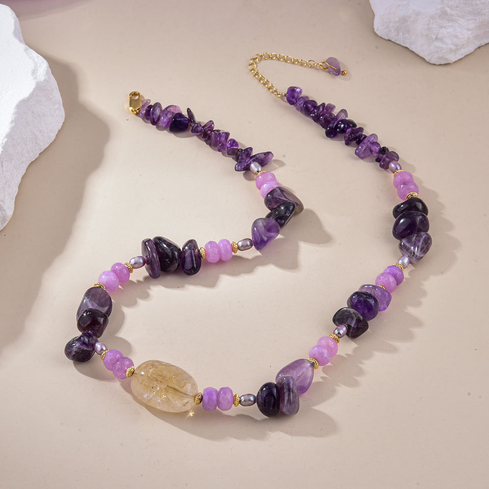 Collar de piedra natural estilo bohemio con amatista para ropa informal de moda