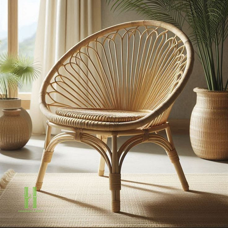 Silla de Comedor de Mimbre Estilo Boho, Silla de Comedor de Mimbre Natural Tejida a Mano, Muebles Ecológicos para Comedor y Sala de Estar, OEM