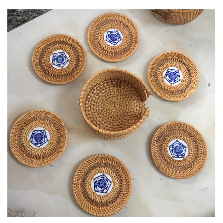 Plato Individual Natural tejido a mano de Vietnam de ratán estilo bohemio para servir comida y decoración de comedor