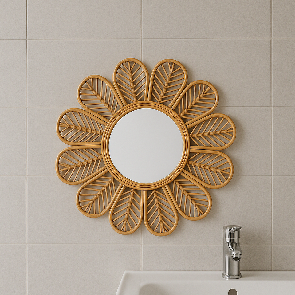 Espejo de mimbre ecológico con diseño bohemio Sunburst, tocador de bambú y tejido, espejo de pared para Baño, Dormitorio, producto, género, espejo de pared