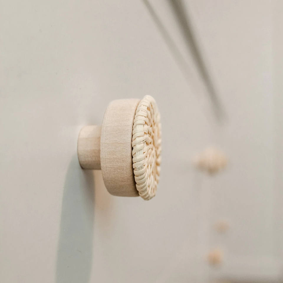 Tirador único de mimbre para puerta de cajón de gabinete, perilla de madera para vestidor, todos los estilos y tamaños, bohemio