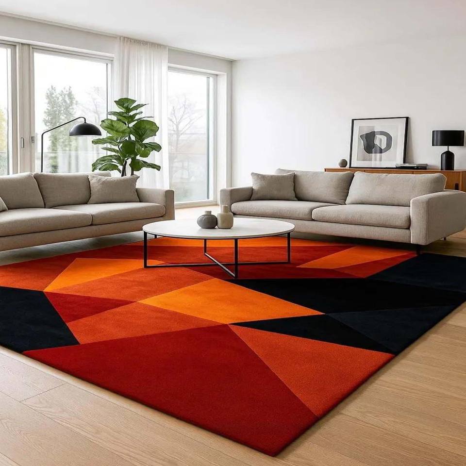 Alfombra Geométrica Atrevida Roja y Naranja, Alfombra Moderna Hecha a Mano, Alfombra Suave y Duradera para Sala de Estar, Dormitorio, Oficina, Decoración del Hogar