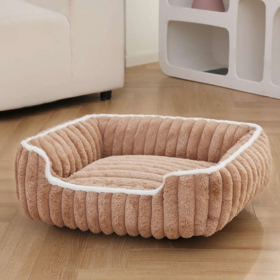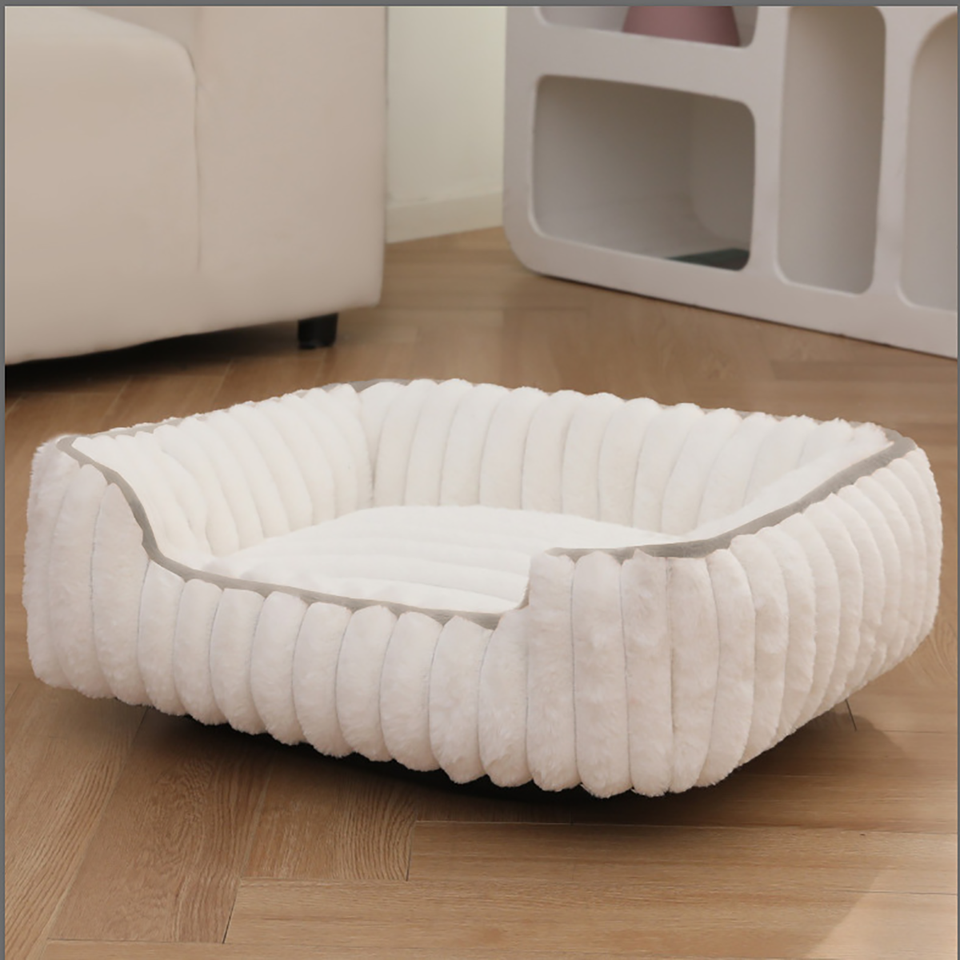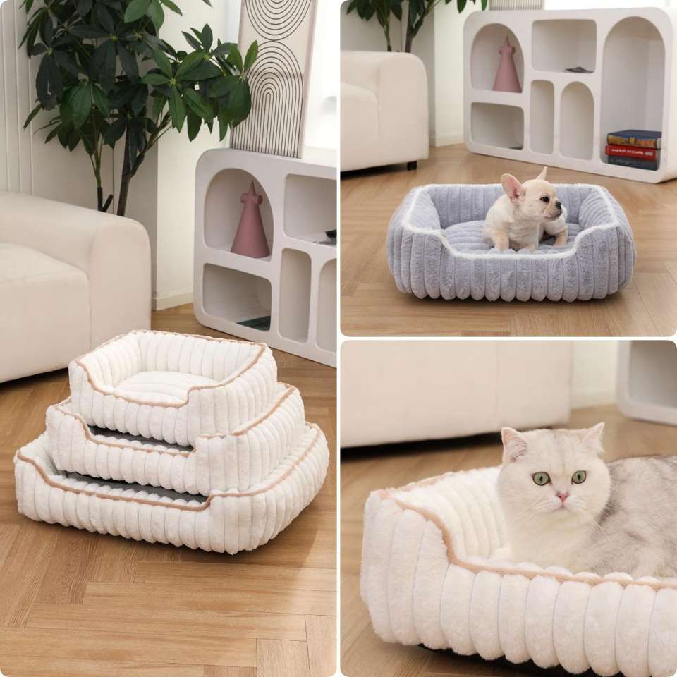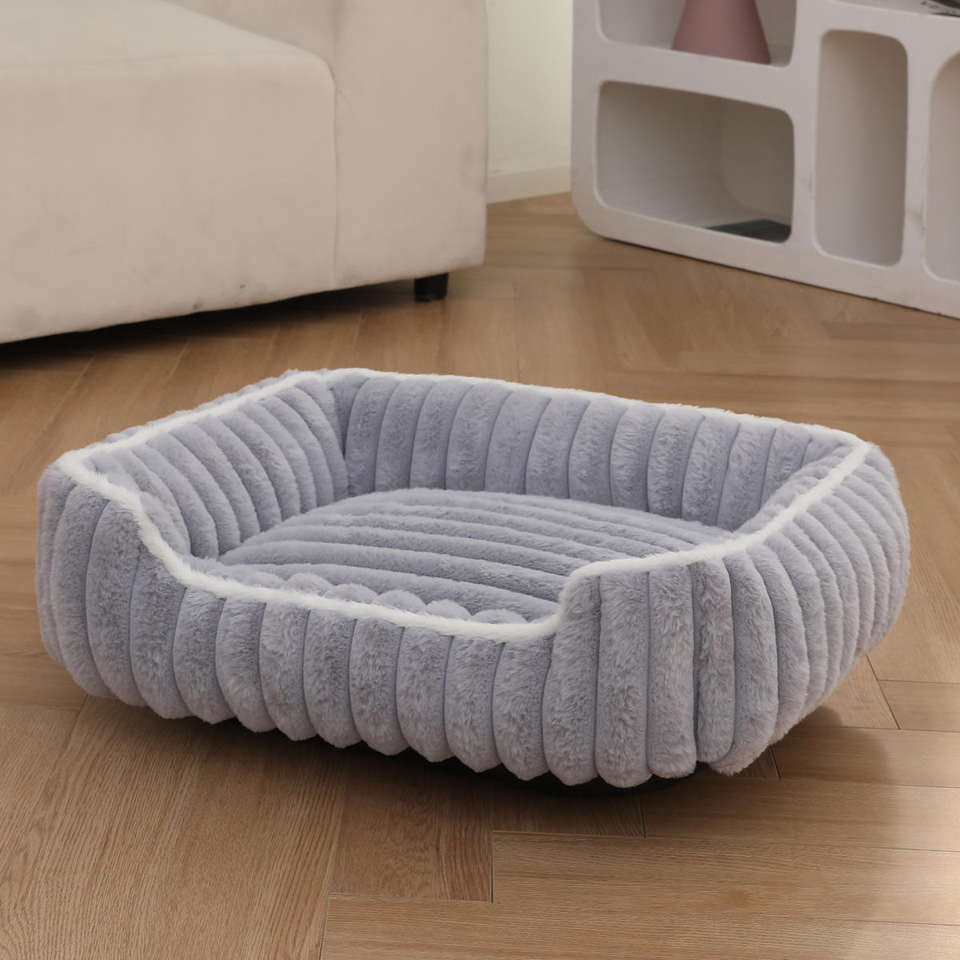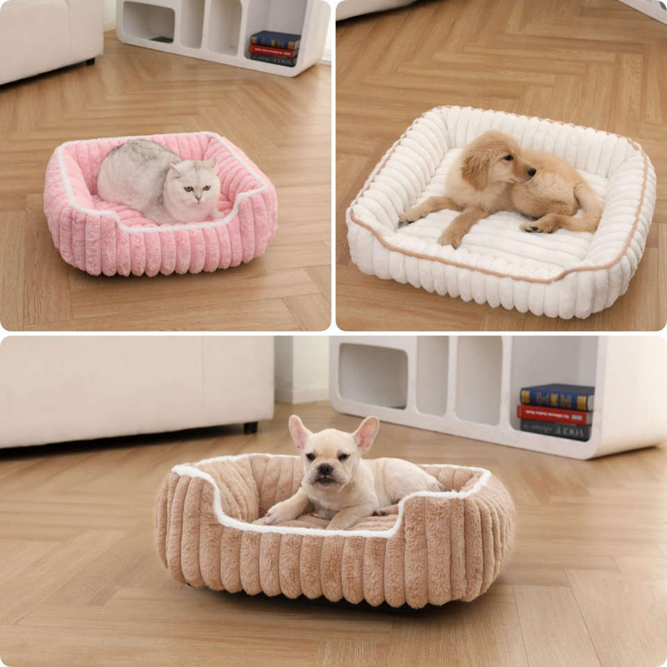 Cama para Mascotas de Felpa de Conejo, Diseño Cuadrado con Barra Recta, Ecológica, Clásica, Moderna, Suave y Cómoda, para Gatos y Perros, para un Sueño Profundo