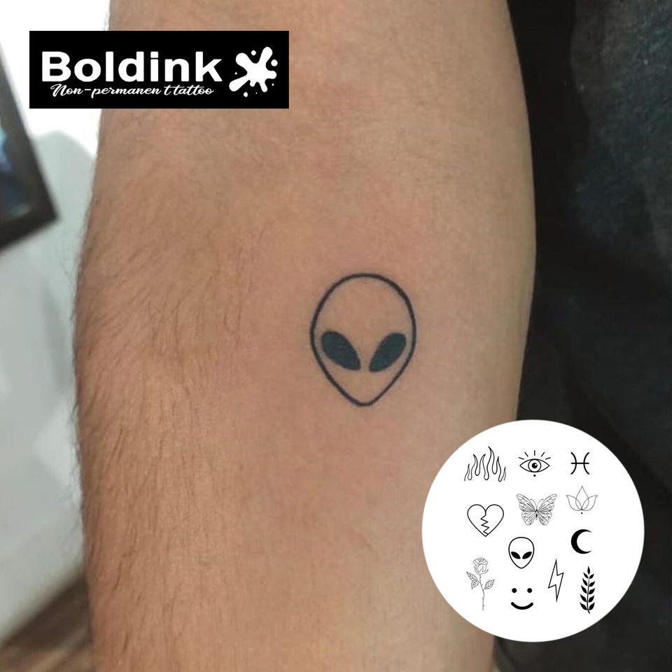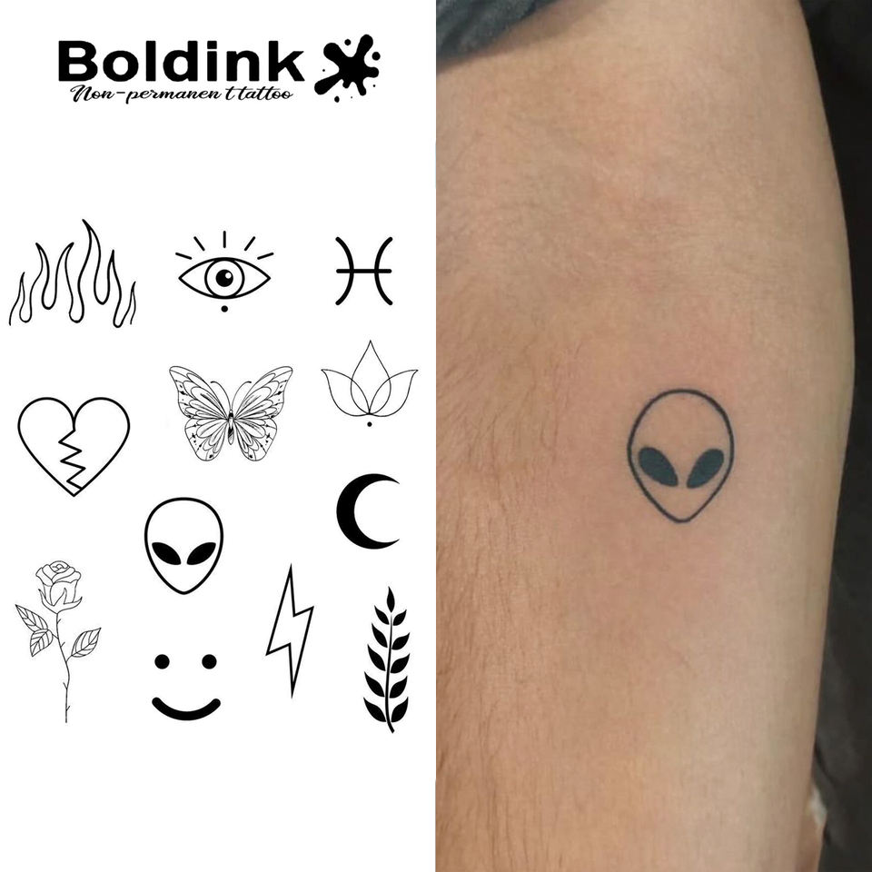 Tatuaje Semipermanente Boldink Personalizado con Cabeza de Extraterrestre, Número Gótico 13, Arte Corporal, Resistente al Agua, Larga Duración (2 Semanas), Tinta Jagua
