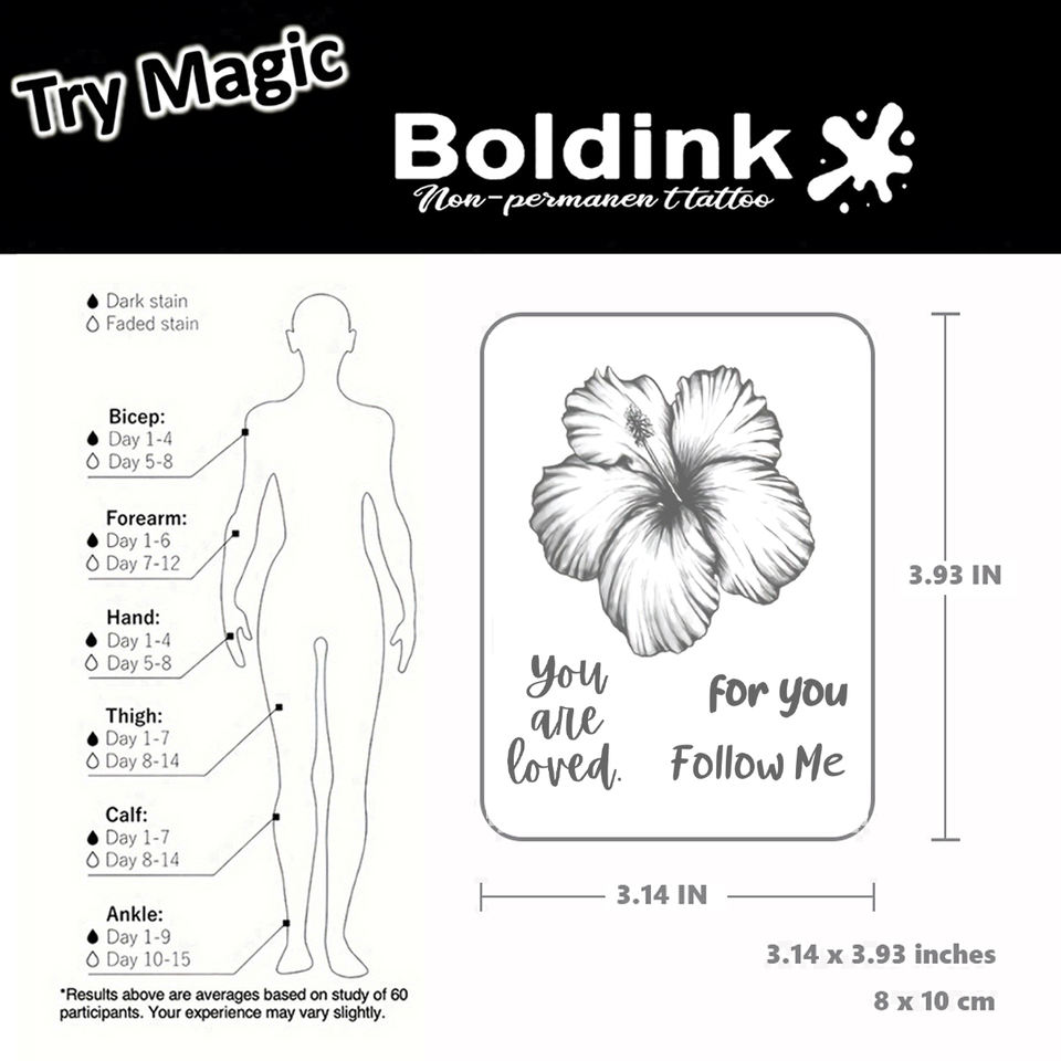 Tatuaje Temporal de Tinta de Jauja con Diseño de Flor de Hibisco Realista Personalizado de Boldink, Resistente al Agua y de Larga Duración (2 Semanas)