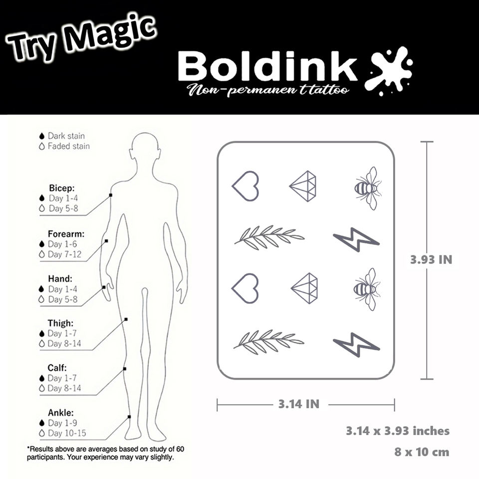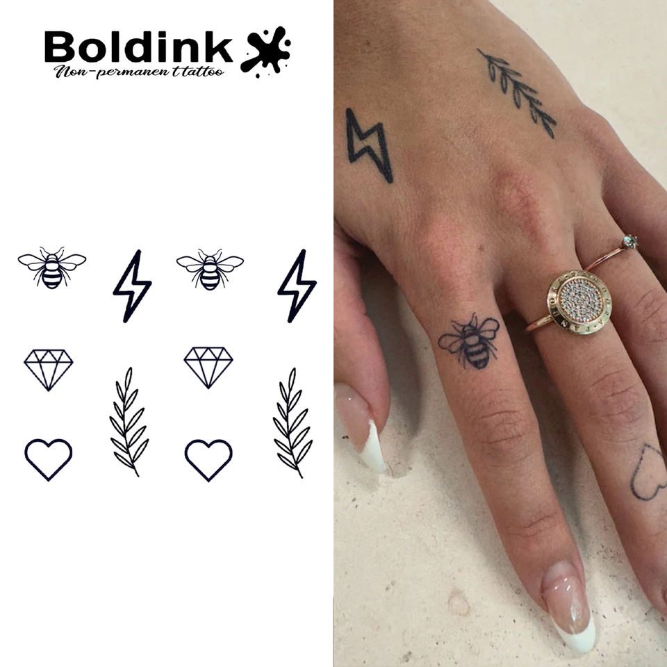 Tatuaje Temporal de Jugo de Jagua Boldink Personalizado, Realista, Micro Pequeño, con Diseño de Abeja y Diamante, Resistente al Agua, de Larga Duración (2 Semanas)