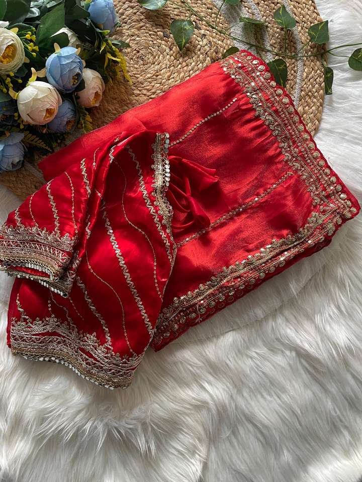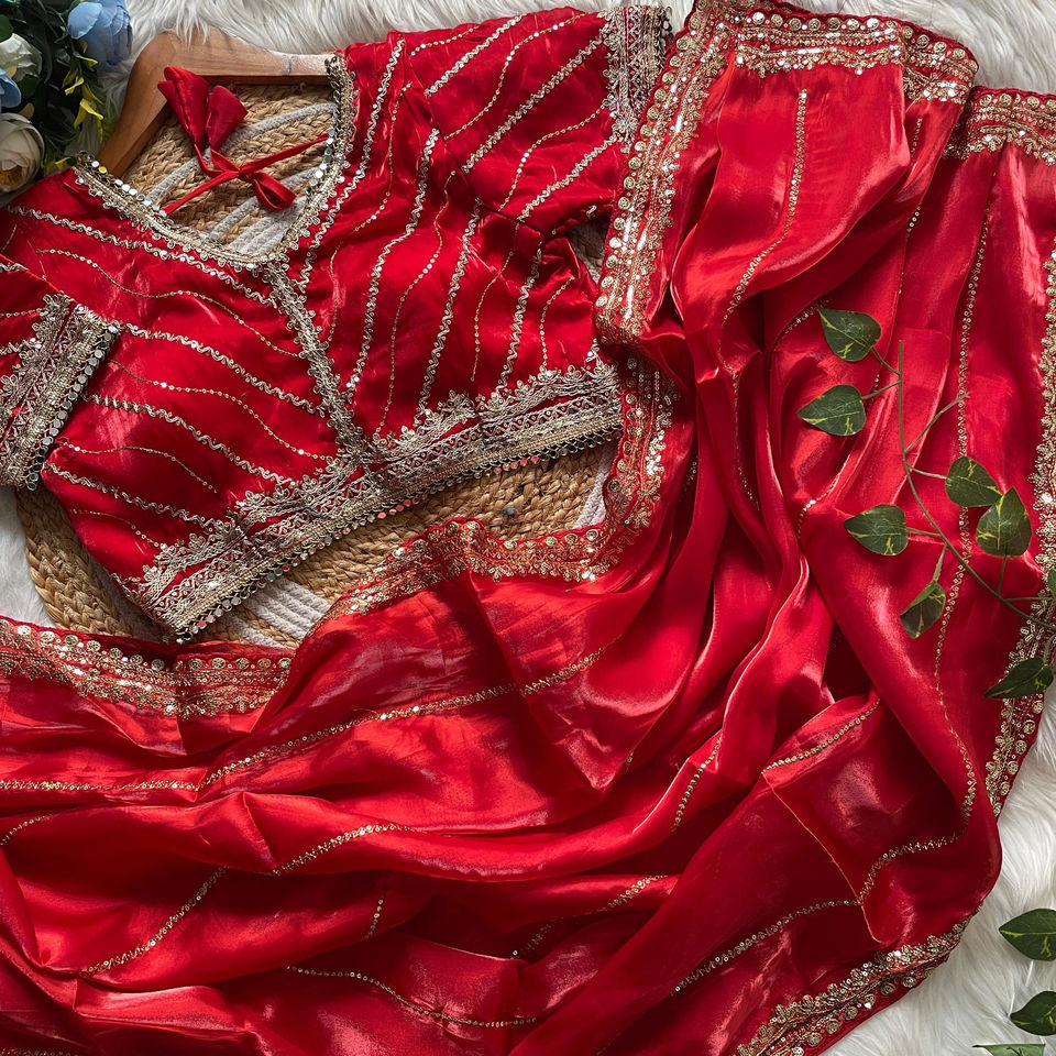 Sari Étnico Tradicional de Diseño Bollywood, de Seda Suave con Bordado de Lentejuelas, con Blusa Cosida, para Bodas y Fiestas