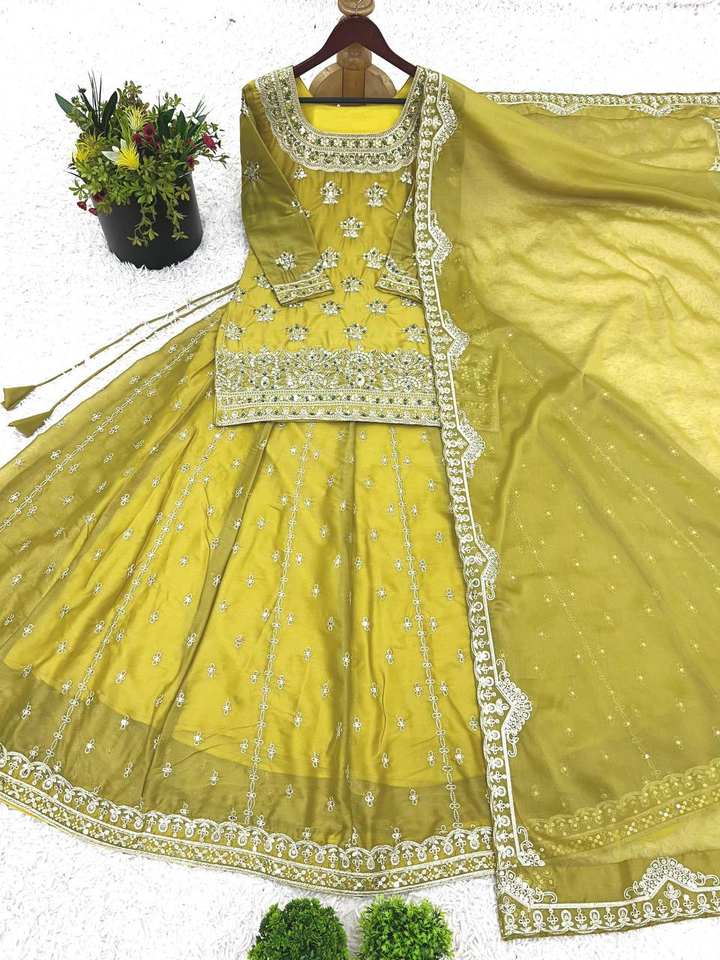 Bollywood Designer Top-Lehenga Collection Star Georgette Tela de seda con Secuencia de bordado pesado y trabajo manual de Moti pesado