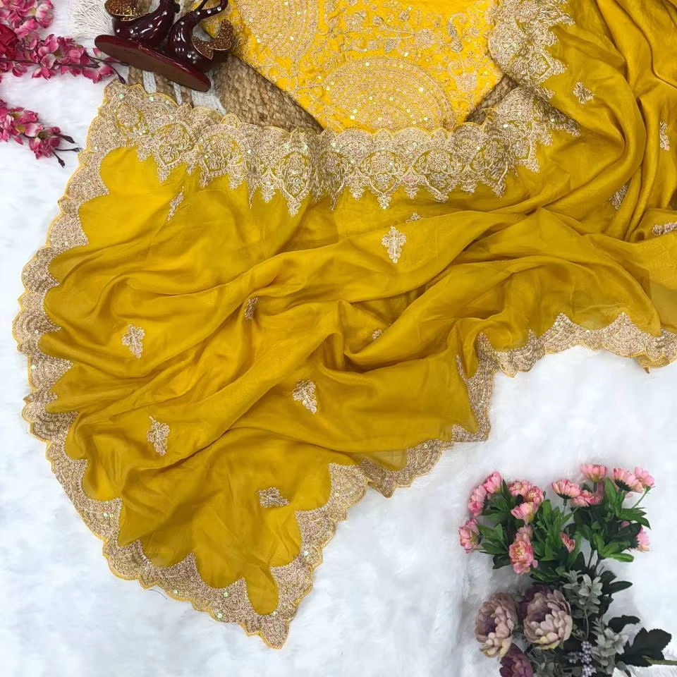 Nombre del Producto:Sari de seda suave Banarasi para mujer