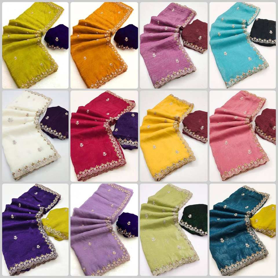 Diseño de bordado de Sari de desgaste de Bollywood con tela crujiente Shiffron trabajo de Moti de mano y trabajo de diamante