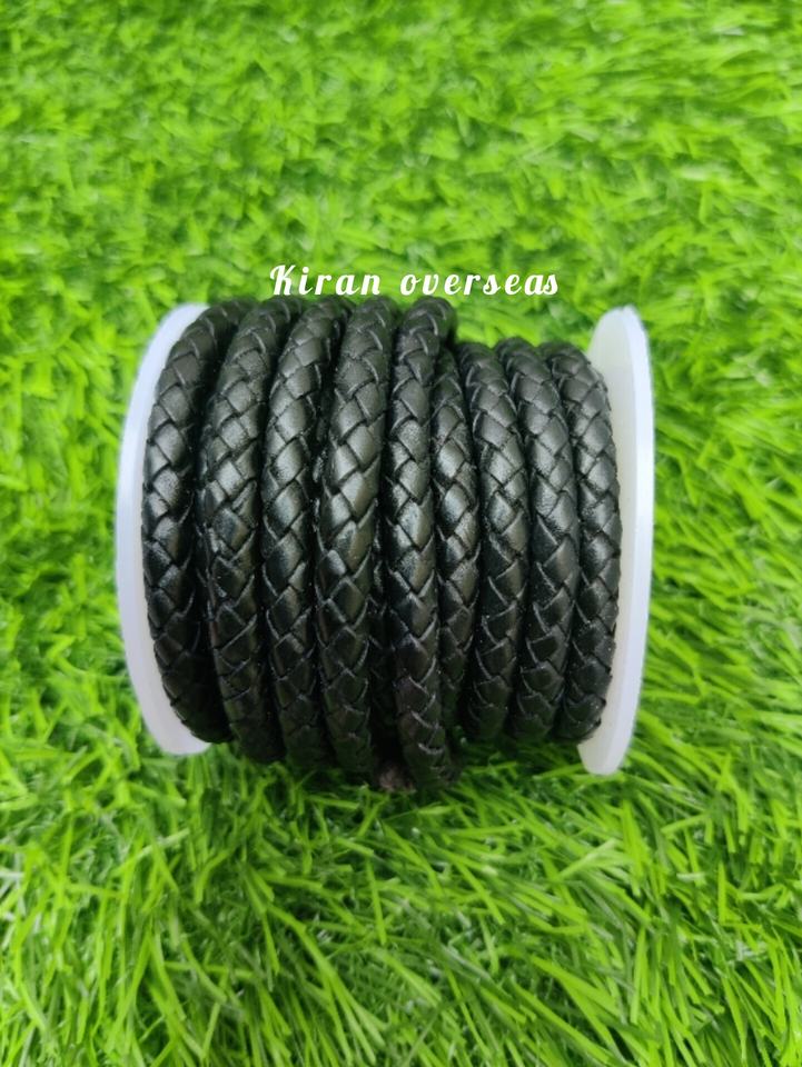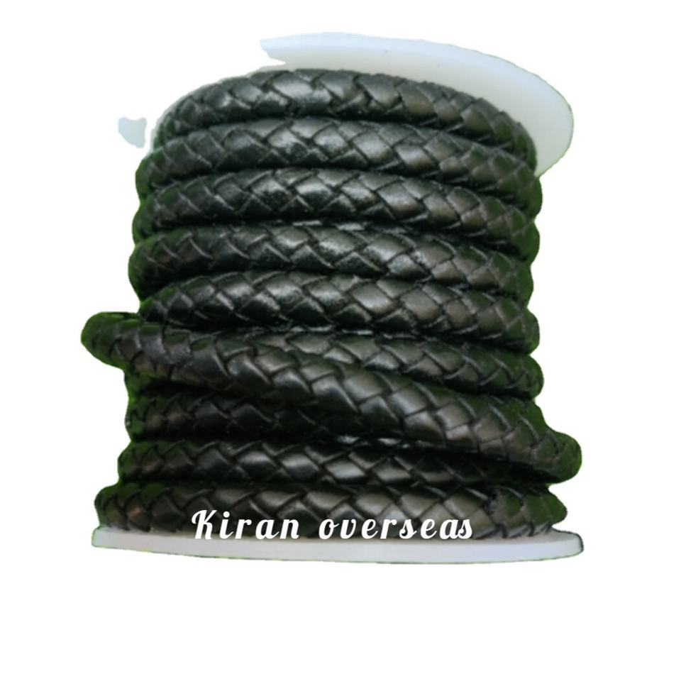 Cordón de cuero trenzado Bolo hecho de cuero de tambor de alta calidad Uso para la fabricación de joyas en cuero negro de 6 mm