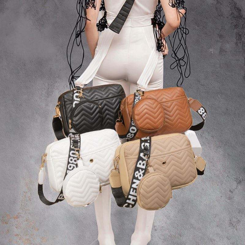 Bolso bandolera femenino estilo coreano tres en uno en nailon resistente al agua con una sola correa y tres compartimentos.