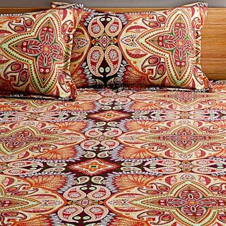Sábana granate teñido Bombay con dos fundas de almohada marrón indio SWBD0098