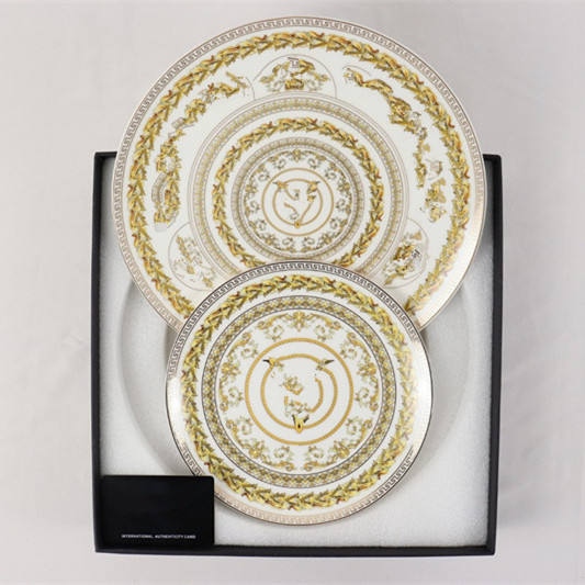 Juego de Platos de Porcelana Fina, 2 Piezas, Blanco y Azul, Estilo Rústico Sostenible, 8in/10in, Caja de Regalo, Diseño Sólido, para Bistec y Ensalada, Uso Doméstico
