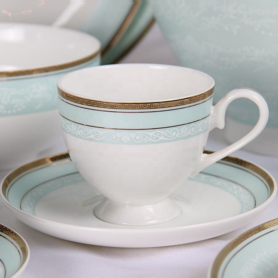 Bone China Tea Cup and Saucer Porcelana con borde dorado de lujo con tetera Juegos de tazas de té de estilo clásico de cerámica