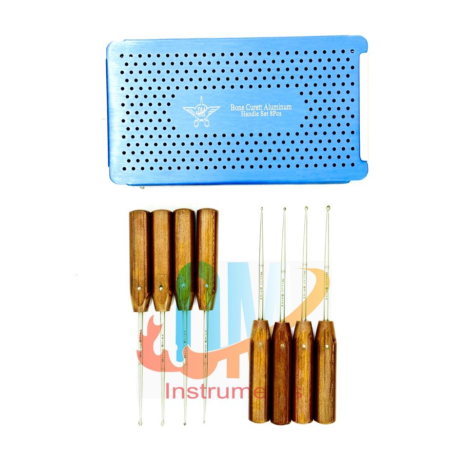 Cureta de hueso Cuchara de hueso con mango de madera Juego de 8 piezas Instrumento quirúrgico ortopédico con bandeja de esterilización de aluminio | OldMed