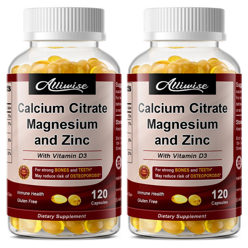 Cápsulas de Gel Suave con Citrato de Calcio, Magnesio y Zinc con Complejo de Vitamina D3 para el Apoyo de la Salud Ósea, 60 Unidades