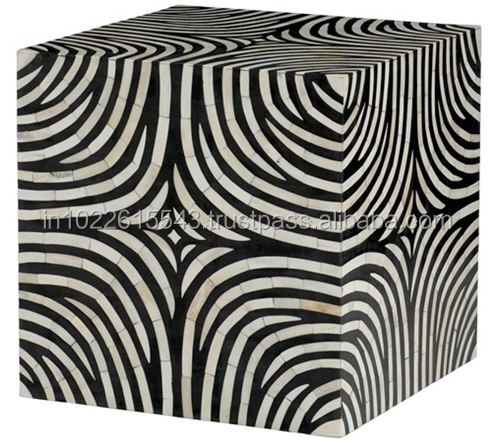 Bone Inlay-mesa auxiliar, diseño abstracto, color blanco y negro