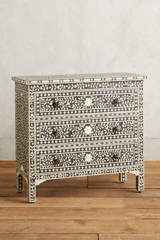 Consola con incrustaciones de hueso, mesa de estilo tradicional con acento para dormitorio, consola de entrada geométrica hecha