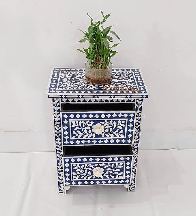 Consola con incrustaciones de hueso, decoración del hogar, incrustaciones de hueso hechas a mano, patrón Floral moderno de madera, mesita de noche, incrustaciones de hueso por Artesanías de media luna
