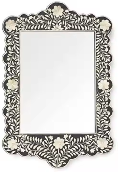 Marco de espejo con incrustaciones de hueso hecho a mano hueso y madre de incrustaciones Marco de espejo hogar Hotel restaurante decoración por artesanía de media luna