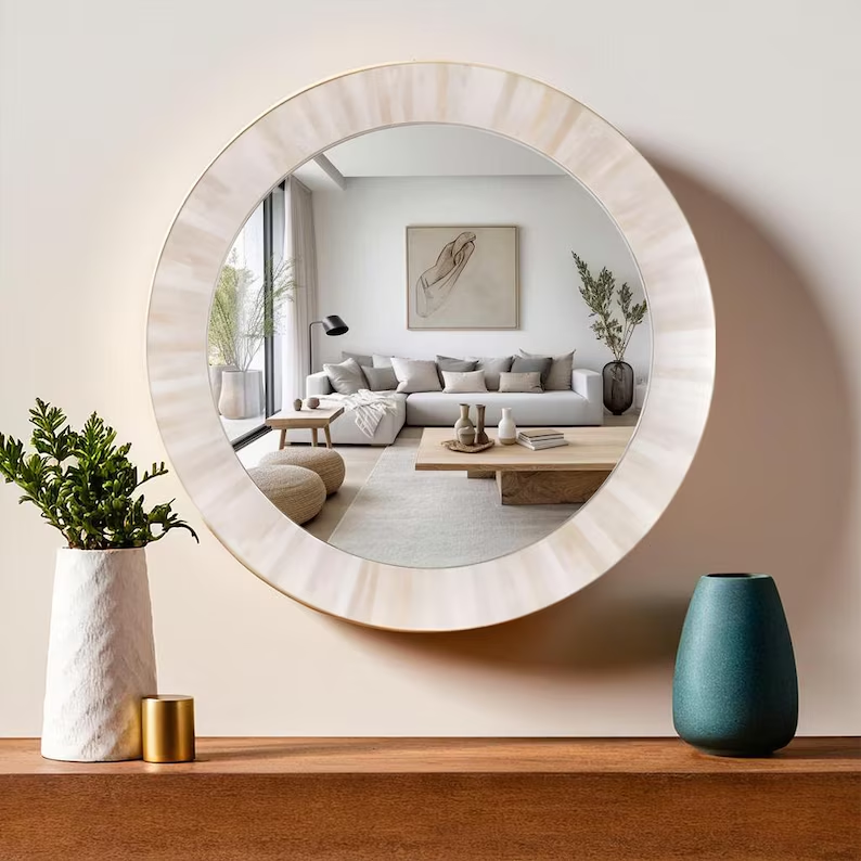Marco de espejo con incrustaciones de hueso Elegante MARCO DE ESPEJO con incrustaciones de hueso y madre de perla hecho a mano por Crescent Crafts