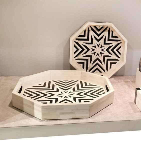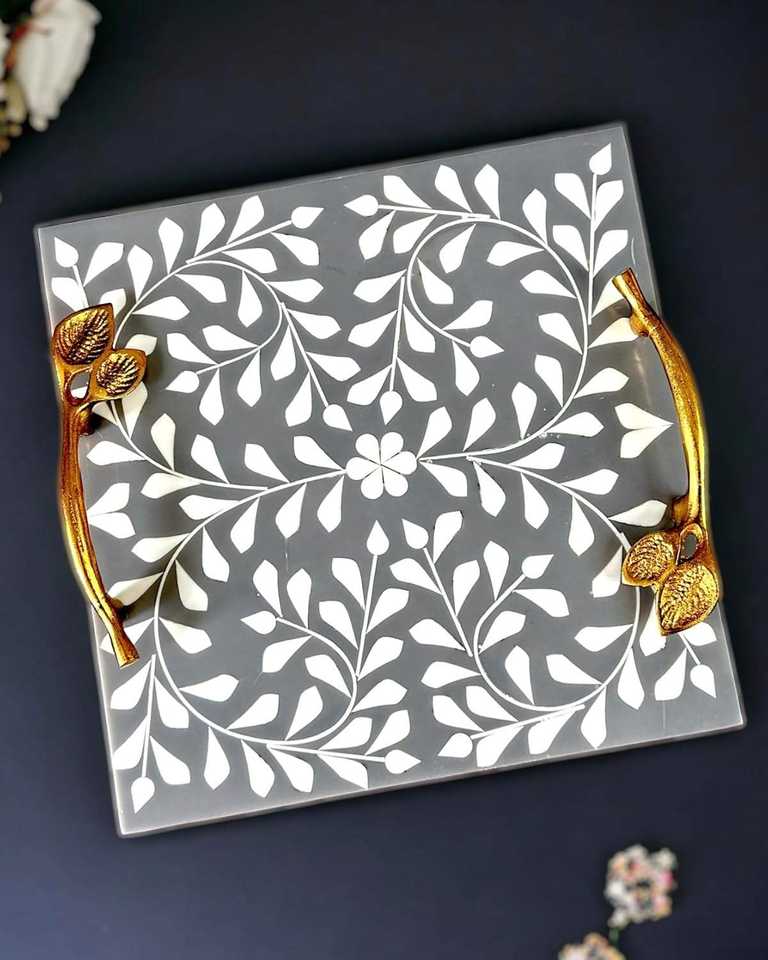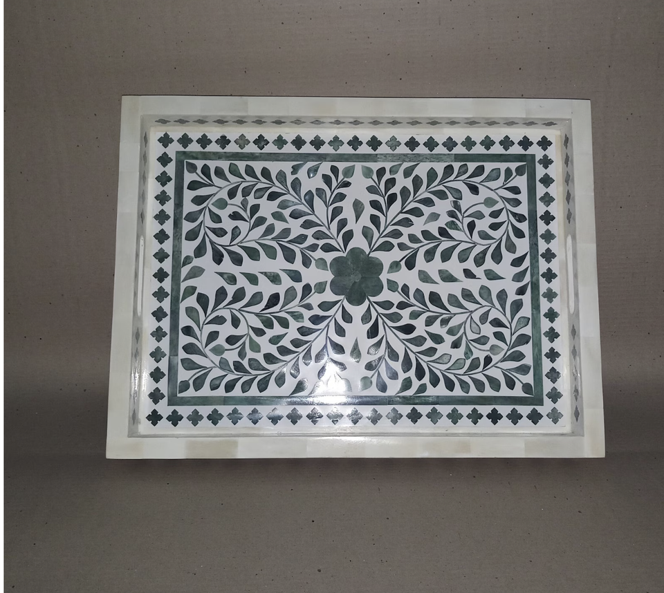 Bandeja Rectangular con Incrustaciones de Hueso, Ecológica, Multifuncional, de Gran Tamaño, Acabado Pulido, Plato para Mesa, Moderna, para Ramadán, Bodas