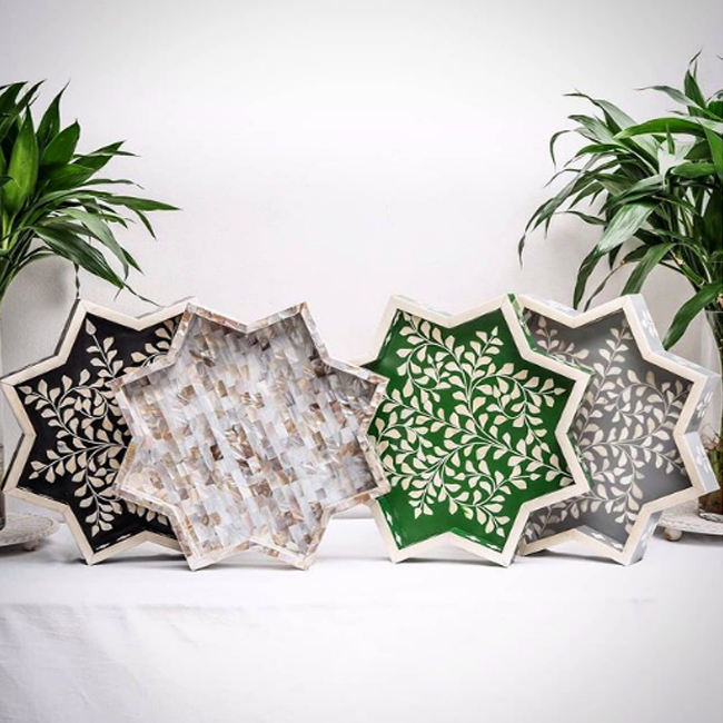 Bandeja de servicio Rectangular hecha a mano ecológica de resina con incrustaciones de hueso con diseño Floral Decoración de cocina axioma acentos para el hogar