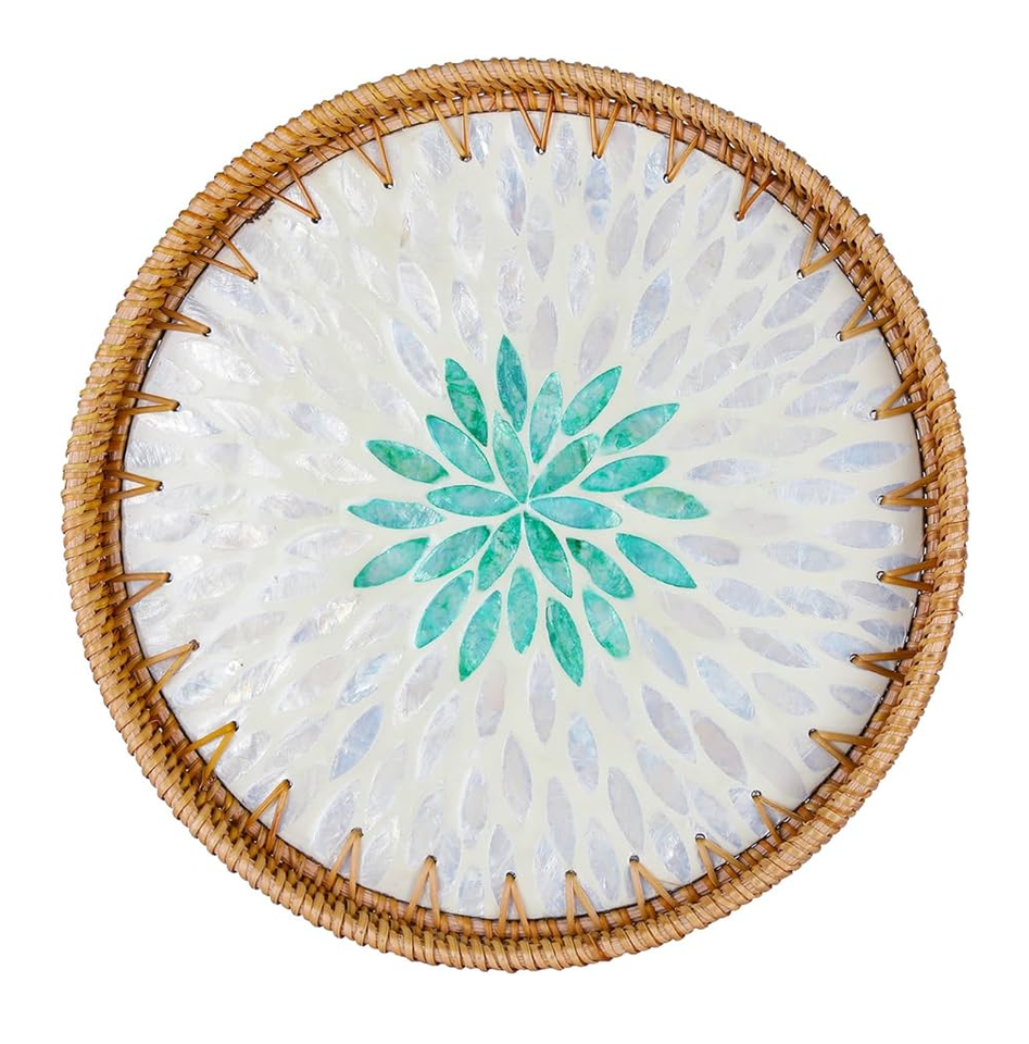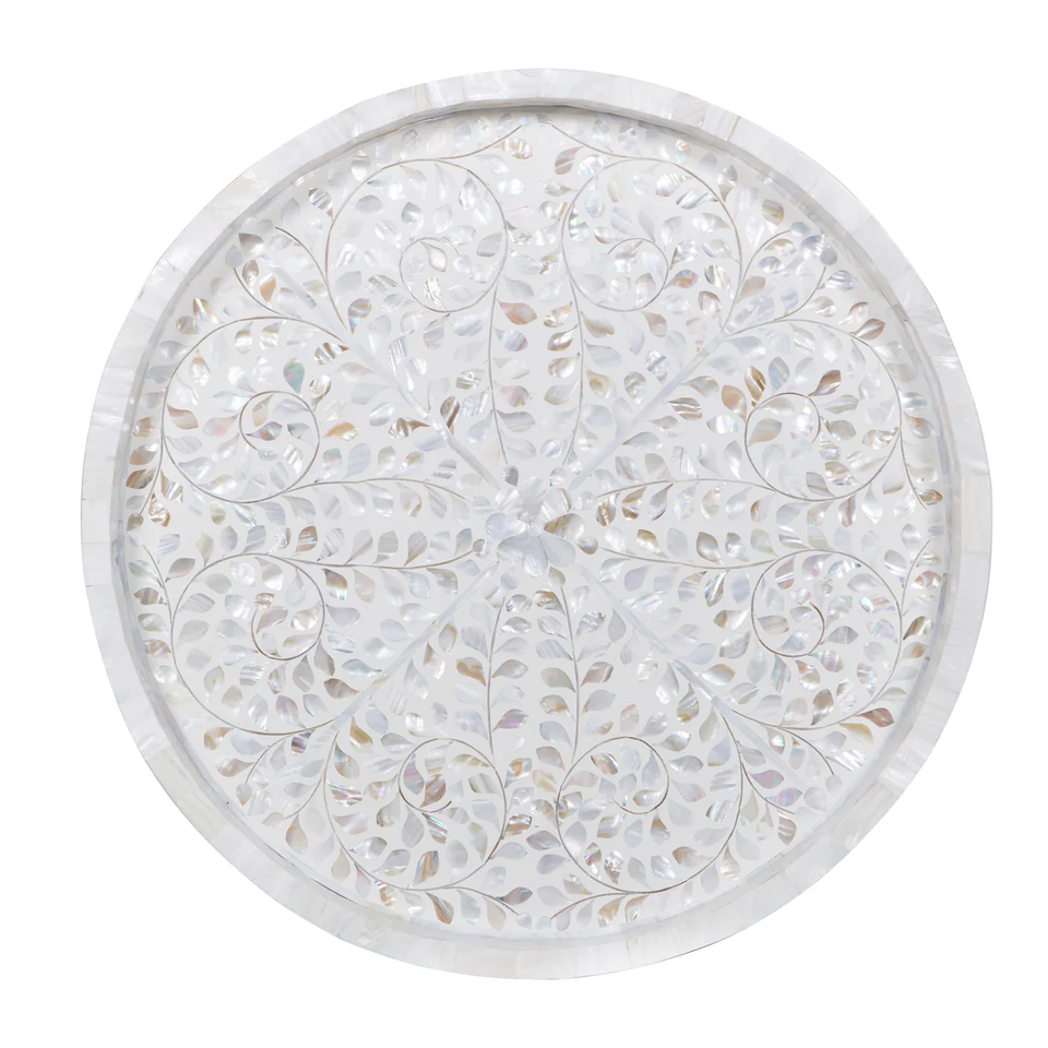 Bandeja para servir con incrustaciones de hueso, bandeja redonda hecha a mano con diseño de nácar de alta calidad, forma redonda