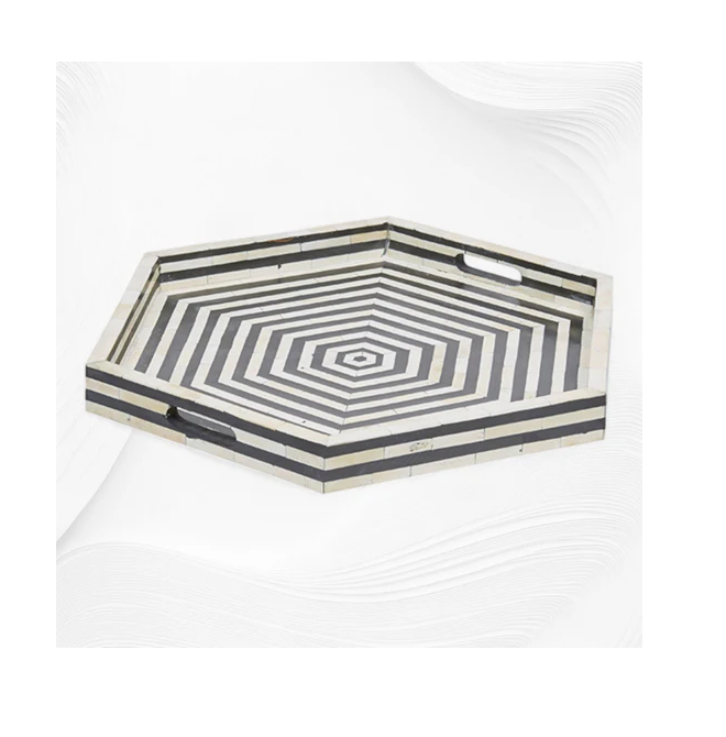 Bandeja de servir con incrustaciones de hueso, diseño moderno, superficie pulida, para servir alimentos, a un precio asequible.