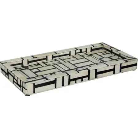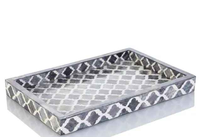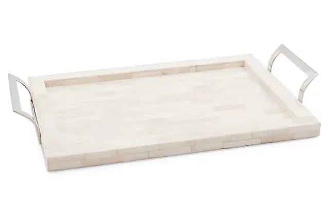 Bandeja para servir con incrustaciones de hueso con mango plateado, forma rectangular, diseño moderno, respetuoso con el medio ambiente, duradero, Apto para lavavajillas, uso en fiestas