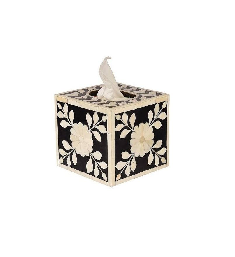 Caja de Pañuelos con Incrustaciones de Hueso, Color Gris y Blanco, Precio Económico, 100% Hecho a Mano, Caja de Joyería con Incrustaciones de Hueso, Tamaño Personalizable y en Oferta
