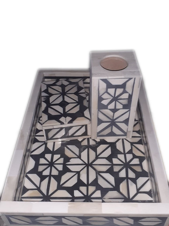 Juego de Portavelas con Bandeja y Caja de Metal con Incrustaciones de Hueso, Hecho a Mano, de Alta Calidad, Estilo Moderno y Tradicional