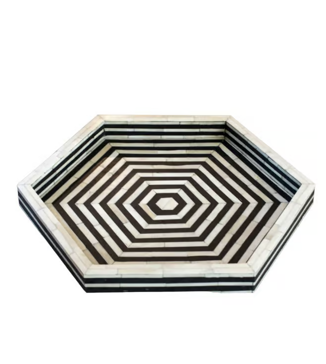 Bandeja de incrustaciones de hueso Artesanías Forma hexagonal Diseño superior para bandeja de mesa de cena Precio asequible
