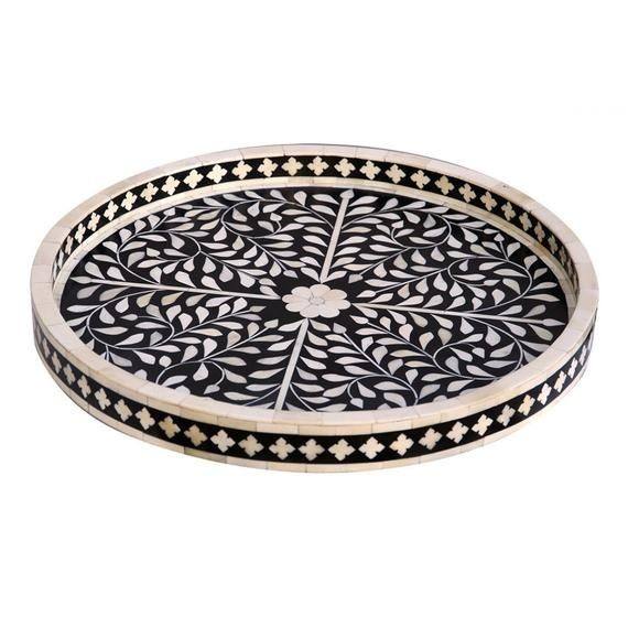 Bandejas de Servir de Estilo Europeo de Una Sola Capa con Incrustaciones de Hueso Hechas a Mano, Vajilla Decorativa para Cocina y Sala de Estar, Apta para Alimentos