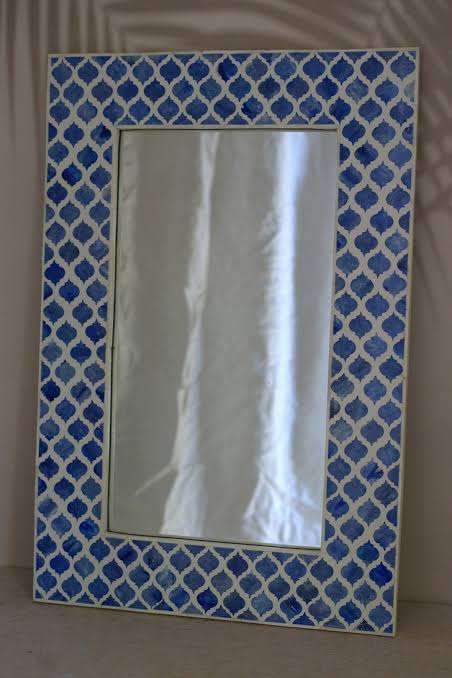 Marco de Espejo de Madera con Incrustaciones de Hueso y Patrón Floral Moderno, Espejo Decorativo Hecho a Mano para Sala de Estar, Dormitorio, Entrada
