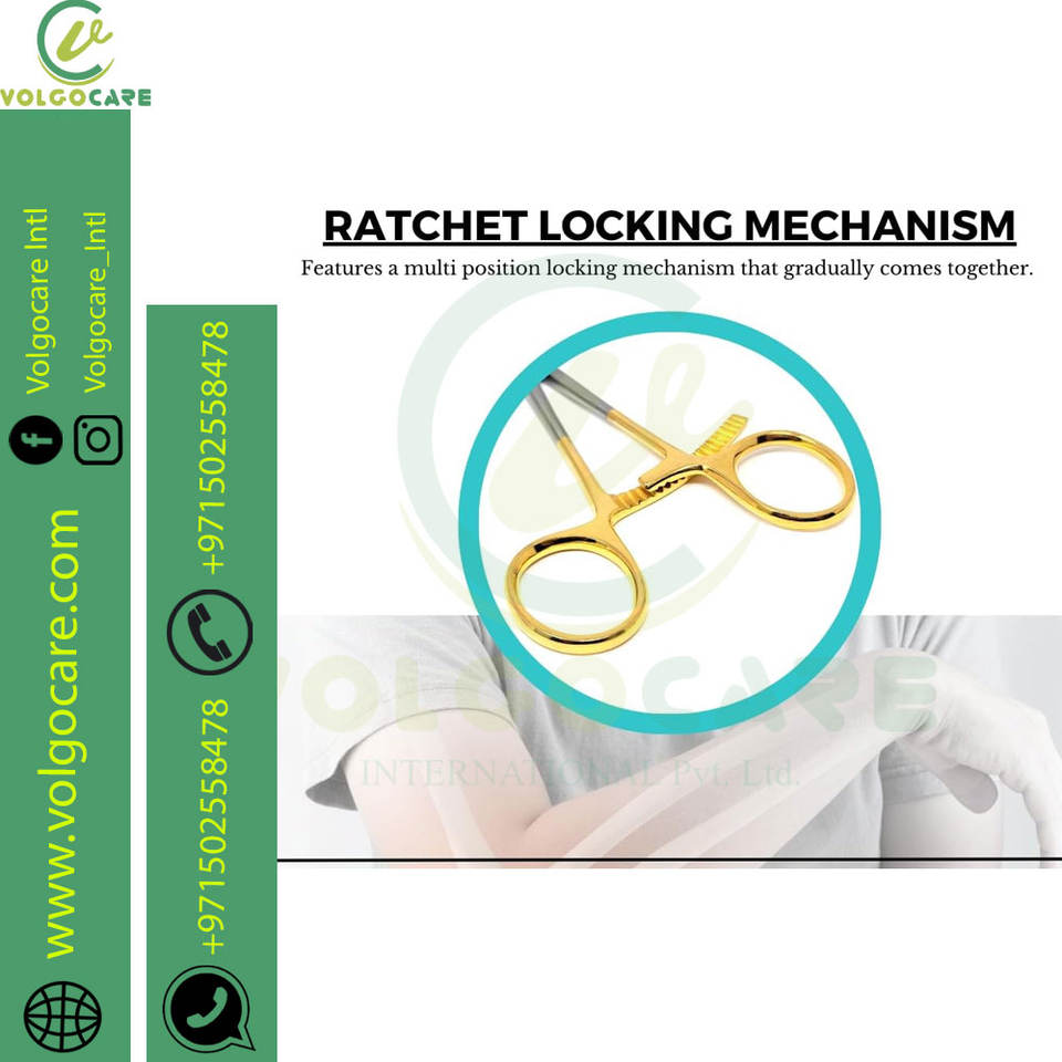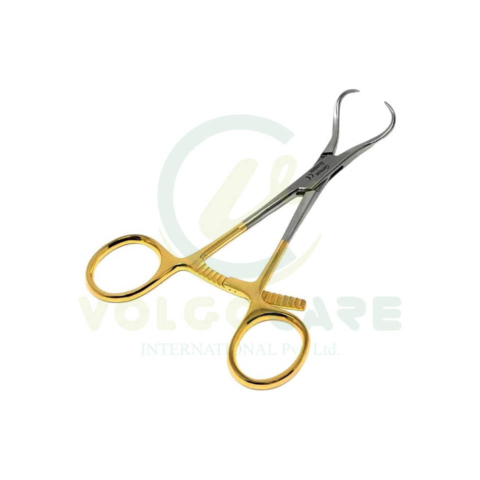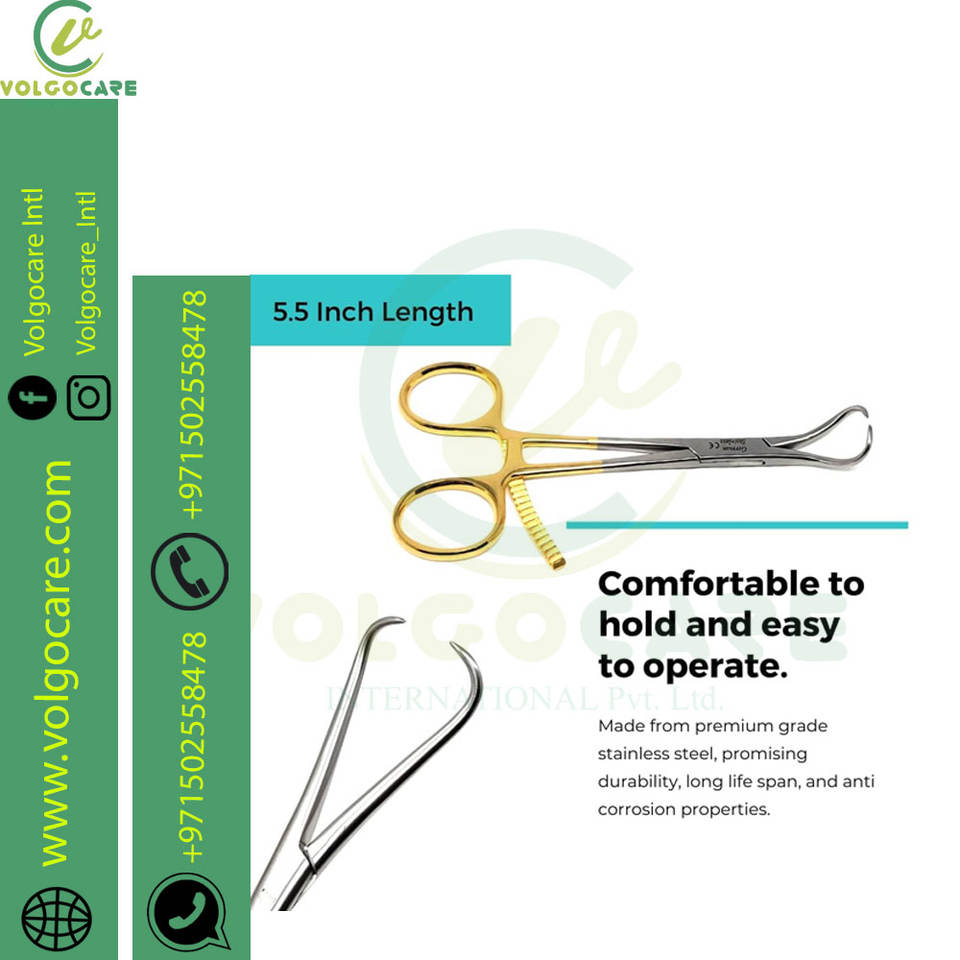 Pinzas de Reducción Ósea con Trinquete Largo y Puntas Curvas Anguladas de 5.5 Pulgadas, Instrumentos Médicos con Mango Dorado